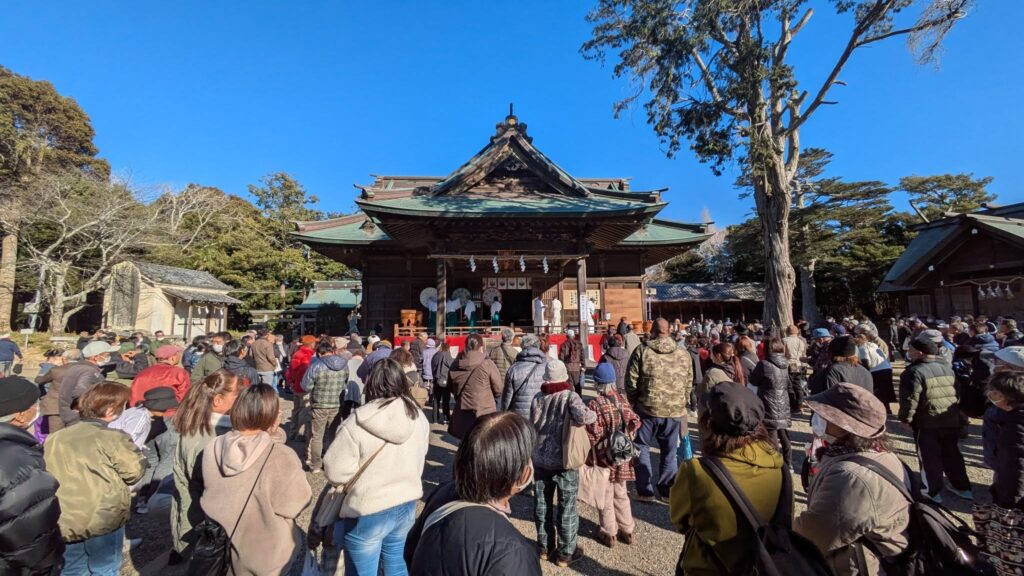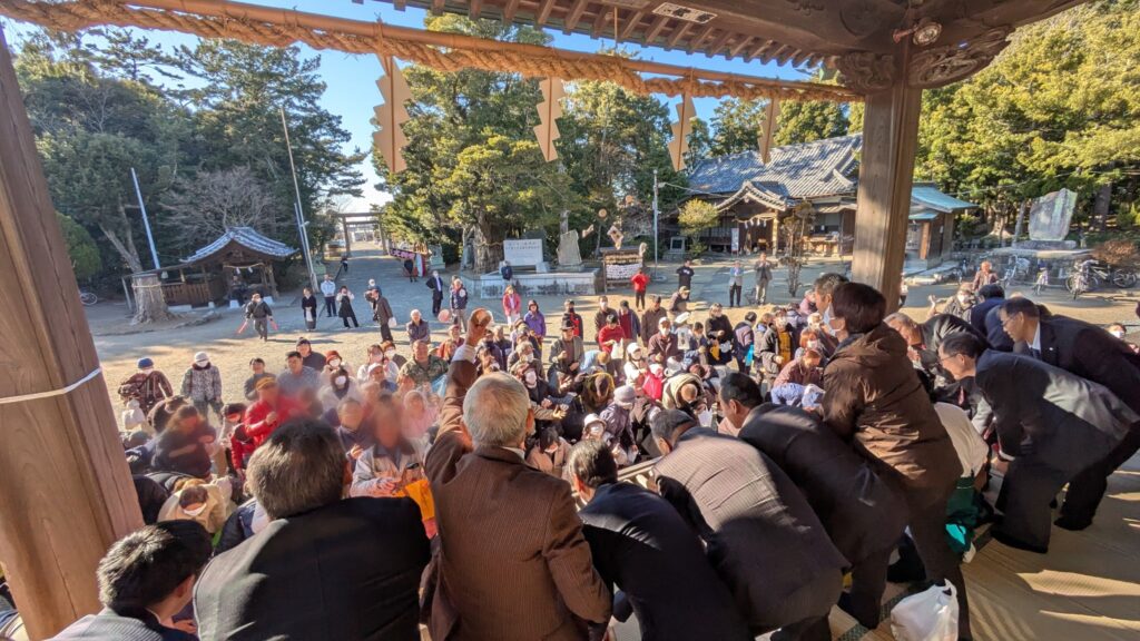 本日は鶴谷八幡宮の節分祭に参加させていただきました。実は何かと行事が重なり初めての参列だったのですが、祭典の最後に拝殿の中で豆まき、そして表で餅まき、福引抽選会ととてもにぎやかな行事でした。