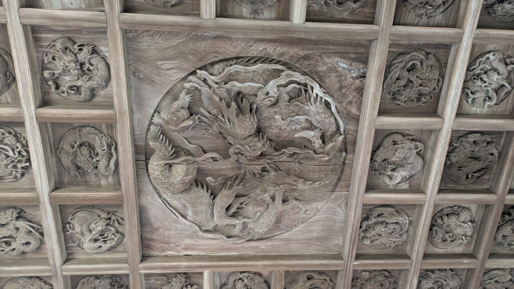 天気にも恵まれ、こうした伝統行事にほっとします。私にとって何より邪気を払うのは、同社向拝天井の初代後藤義光作「百態の龍」。鬼も怖がって近づきません。