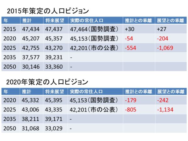 昨日も市のLINEで、住民基本台帳の人口が42,858人と、先月から60人減少したことが流れてきました。実際に住んでいる人は住基より少ないので、常住人口は42,116人と推計されます。 10年前の2015年策定の人口ビジ … 続きを読む 12月議会の一般質問について