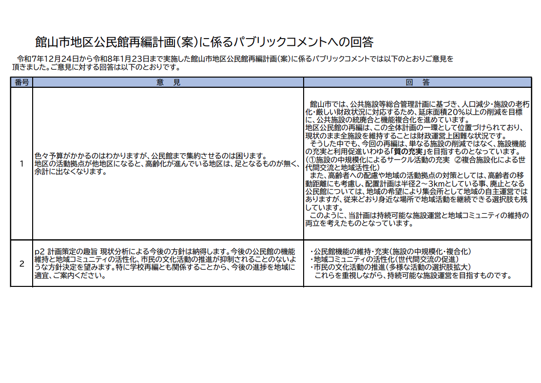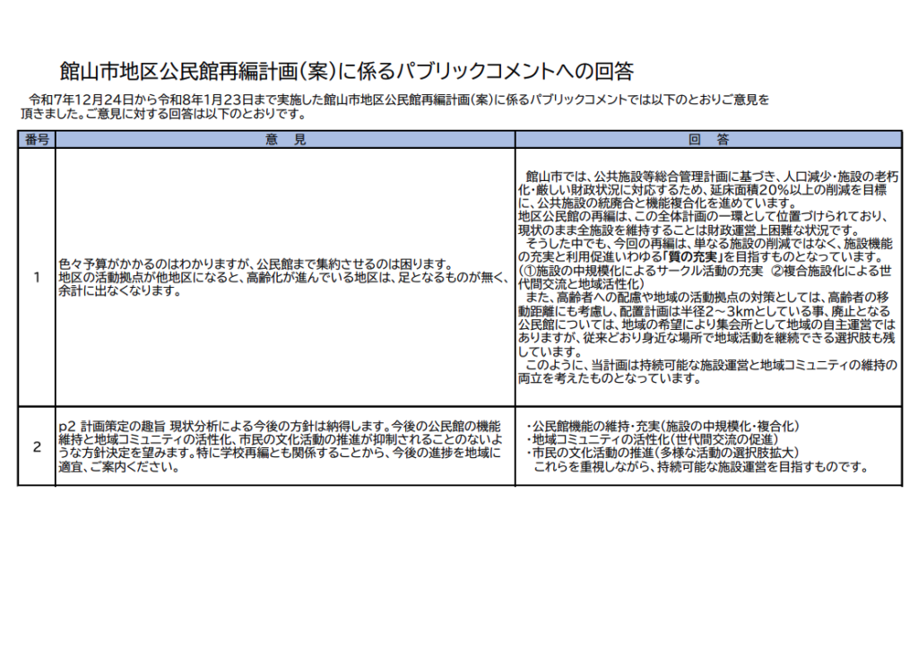 実は今回の計画に対して、私自身もパブリックコメントを提出していました。事前に確認したところ、今回の公民館再編計画には合計75件の意見が寄せられていました。